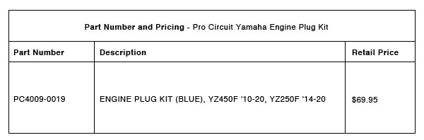 CORONA, CA - May 7, 2025 - Looking to give your Yamaha that factory race-team style? Pro Circuit's Yamaha Engine Plug Kit is the perfect upgrade for your YZ250F (2014-2020) or YZ450F (2010-2020). This sleek three-piece kit is CNC-machined from tough, aircraft-grade aluminum, anodized in a striking blue, and hand-polished for a premium finish. It's the little detail that makes a big statement.